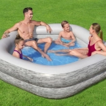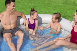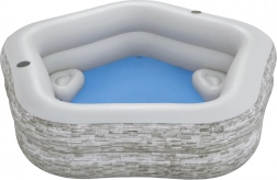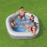 Geniet van zomerse ontspanning met het opblaasbare hoekzwembad van BESTWAY met afmetingen 213 × 206 × 53 cm. Het biedt snel opblazen en leeglaten, een stabiele constructie met twee luchtkamers, brede zachte wanden voor comfortabel leunen, geïntegreerde opblaasbare rugleuningen met kussentjes en bekerhouders. Een geweldige keuze voor gezinsrelax in de tuin.