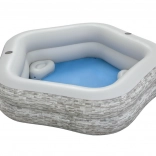 Dit ruimtebesparende hoekzwembad met steenmotief past perfect op terras en in de tuin. Duurzaam PVC en stevige wanden zorgen voor een lange levensduur, terwijl de zachte bovenrand uitnodigt tot comfortabel zitten en afkoelen op hete dagen. Dankzij het praktische aftapventiel laat je het zwembad na het zwemmen eenvoudig leeglopen.