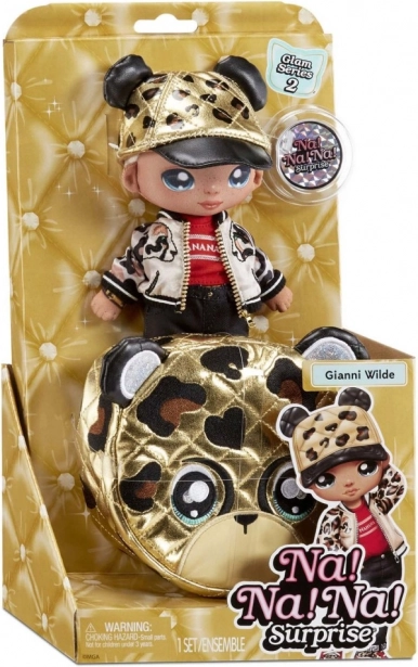 De prachtige Na! Na! Na! Surprise pop en handtas vormen het ideale duo voor elke speelse modeliefhebber. De handtas is gemaakt van glanzende metallic stof en andere materialen voor duurzaamheid en een lange levensduur. Dankzij de transparante verpakking zie je precies wat je koopt – de geweldige details van de outfit van de pop en de stijl en vorm van de handtas met prachtig gekleurde ogen en lange wimpers.