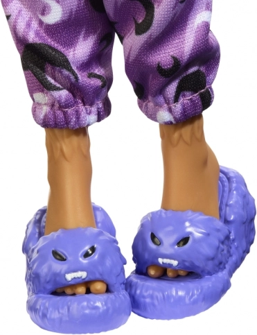 Clawdeen Wolf komt in een perfect afgestemde “creep-chic” look die comfort met griezelig-schattige stijl combineert. Lange, paarse golvende haren, een superzacht pluizig jasje, crop top en legging met maanprint vormen een outfit waar kinderen dol op zullen zijn. Dankzij geledingen in taille, ellebogen, polsen en knieën neemt ze moeiteloos sterrenposes aan.
