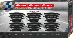 Breid je racebaan uit met een precieze bocht 1/30° die compatibel is met Carrera Evolution, Digital 132 en Digital 124. De set bevat 6 delen = 180° met radius R1 voor dynamische, technische secties en een realistische race-ervaring.
