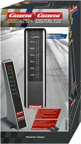 Verbeter je race-ervaring met de uitslagtoren voor DIGITAL 132/124. Toont duidelijk de huidige positie van de auto's en werkt in combinatie met de Control Unit (30352). In de verpakking vind je een Position Tower en een adapter – gewoon aansluiten en racen maar.