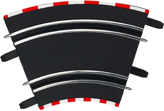 Breid je racebaan uit met overhellende bochten 1/45°, die realistischer rijervaring en hogere bochtensnelheden brengen. Compatibel met CARRERA GO!!!, GO!!! Plus en Digital 143. De verpakking bevat 4 stuks.