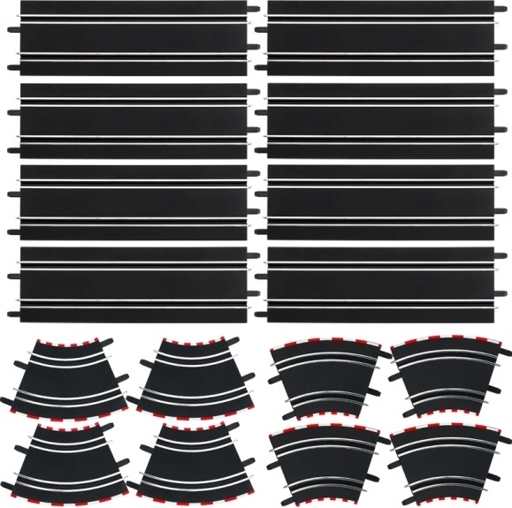 De uitbreidingsset voor de racebanen GO!!!, GO!!! Plus en Digital 143 is de ideale keuze voor iedereen die zijn baan wil verlengen en interessanter wil maken. De set bevat rechte stukken voor hogere snelheid en een combinatie van standaard- en geheelde bochten, die zorgen voor meer helling en een vloeiendere doorgang.
