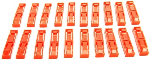 Praktische klemmen voor een vaste en veilige verbinding van racebaandelen. De verpakking bevat 20 stuks klemmen die compatibel zijn met CARRERA Evolution, Digital 132 en Digital 124. Zorgen voor een stabiele rit, veilige verbindingen en eenvoudige montage zonder gereedschap.