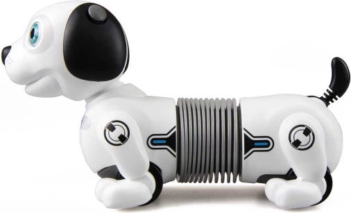 De robothond Dackel is een geweldige speelkameraad voor kinderen – hij luistert naar eenvoudige commando’s, reageert op aaien en verandert dankzij de slimme bal in een actieve speelpartner. Zijn flexibele lichaam kan zich uittrekken tot 26 cm en de lichtgevende ogen geven het spel een levendige uitstraling.