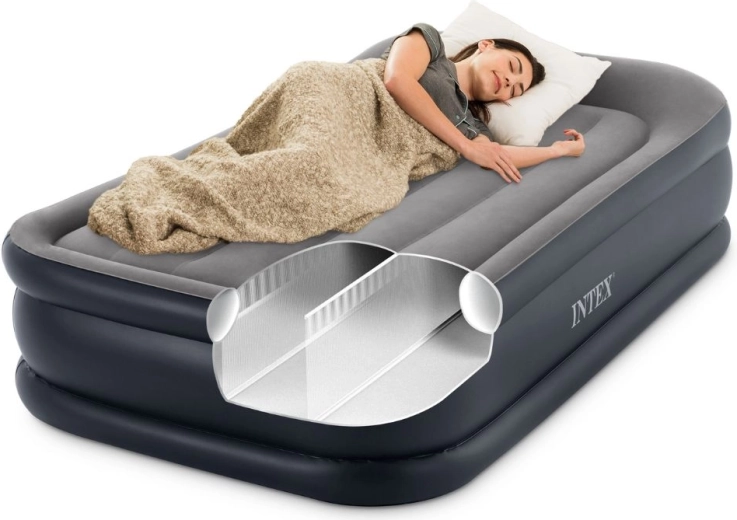 Zoek je een comfortabel en stabiel extra bed voor gasten, op de camping of op reis? Het INTEX opblaasbaar eenpersoonsbed met een hoogte van 42 cm biedt comfort vergelijkbaar met een klassiek bed. De velours toplaag voelt aangenaam aan en voorkomt dat het hoeslaken wegglijdt, terwijl de ingebouwde elektrische pomp (220–240 V) zorgt voor een snelle slaapplek.