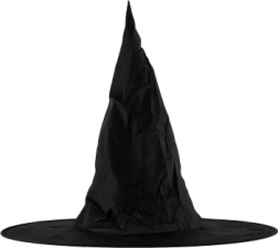 De opvallende punt en brede rand geven je outfit een authentiek karakter. De zwarte stoffen hoed past perfect bij zowel een heksen- als een tovenaarskostuum.
