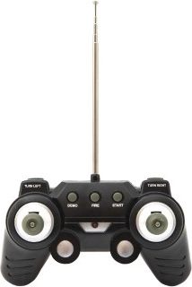 - rijden vooruit/achteruit, draaien, 360° draaibare koepel, geluids- en lichteffecten, spelmodus met 'levens'