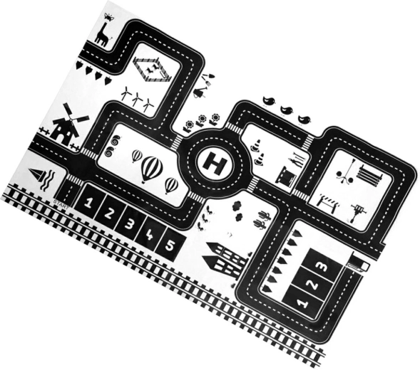 Deze kleurrijke mat heeft een dubbelzijdige print met straten, wat geweldig vermaak biedt voor elk kind. Duurzaam PVC met een afwasbaar oppervlak maakt het eenvoudig schoon te houden. Bij vervuiling is het voldoende om de mat af te nemen met een vochtige doek. Hij is erg licht, waardoor je hem makkelijk mee op reis kunt nemen.