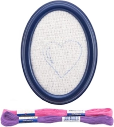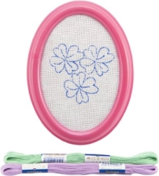 - Plastic lijst met opgespannen doek met voorgedrukte afbeelding, twee extra patronen om te borduren, borduurgaren