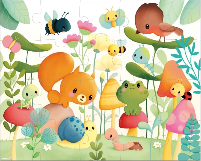 De puzzel in koffertje Vrienden uit de tuin zal iedere kleine ontdekkingsreiziger blij maken. Kleurige scènes met dieren – eekhoorn, kikker en insecten – stimuleren visuele waarneming, concentratie en fantasie. Het praktische koffertje met handvat maakt dragen en opbergen gemakkelijk, waardoor de puzzel ideaal is voor uitstapjes én de kinderkamer.