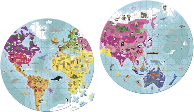 De ronde JANOD Globe-puzzel is prachtig geïllustreerd en ideaal voor zowel kinderen als volwassenen die houden van puzzelen en ontdekken. Tijdens het leggen leren kinderen waar ter wereld verschillende diersoorten leven en oefenen ze tegelijkertijd hun concentratie.