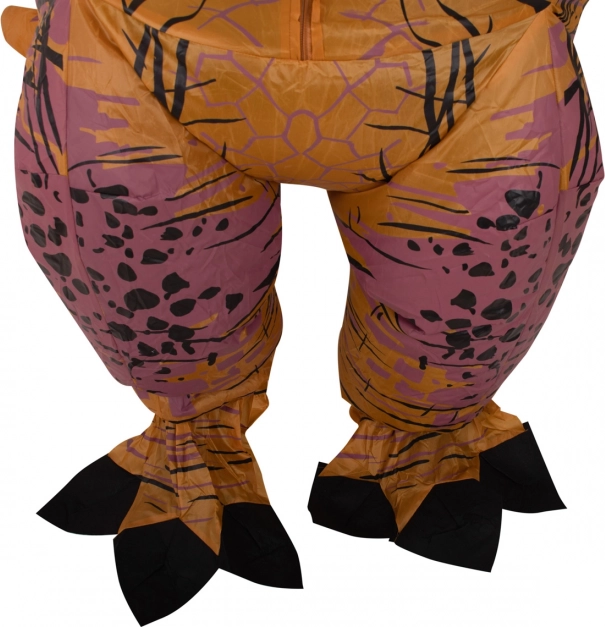 Gedetailleerde print, open bek met zichtbare tanden en dinosaurusklauwen zorgen voor een wow‑effect op elk evenement.