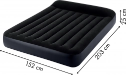 Dubbelwandig opblaasbaar luchtbed van INTEX met afmetingen 203 × 152 × 25 cm voor comfortabel slapen met 2 personen, thuis of onderweg. Gemaakt van duurzaam PVC met een aangename waterbestendige velours toplaag. Dankzij de ingebouwde elektrische pomp is het luchtbed in ongeveer 250 seconden opgeblazen. De stabiele constructie met Dura-Beam Fiber-technologie zorgt voor uitstekende ruggesteun, terwijl het geïntegreerde kussen extra comfort biedt. Een praktische ventiel maakt snel leeglaten en eenvoudig opbergen mogelijk.