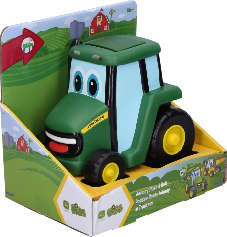 De leuke JOHN DEERE Johnny tractor voor de allerkleinsten biedt eenvoudige bediening: druk op het dak en rijden maar! Het compacte formaat van 15 cm past ideaal in kinderhanden en het veilige speelgoed schiet vooruit zodra je loslaat.