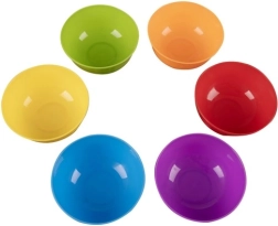 Gekleurde schaaltjes en figuurtjes helpen kinderen kleuren herkennen en eenvoudig te leren tellen op een speelse manier. Ideaal ter voorbereiding op de kleuterschool.