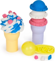 Duik in de wereld van creativiteit met Kinetic Sand - IJsmaken. Deze set stelt kinderen in staat om hun eigen ijskreaties te maken met uniek zandmateriaal. Met 396 g blauw, roze en wit zand, twee ijshoorntjes en tools zoals een raspschaal en maatlepel met vormpjes biedt het eindeloze mogelijkheden voor creatie.