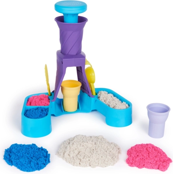 Kinderen kunnen hun ijskreaties maken, decoreren en serveren met verschillende kleuren kinetisch zand.