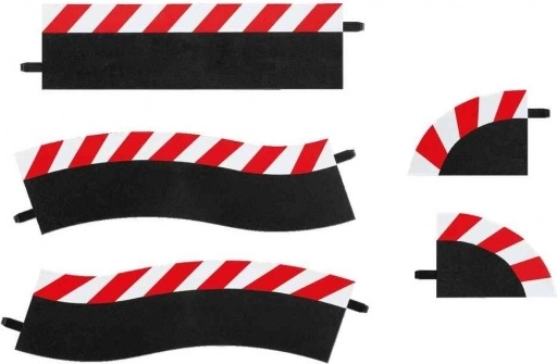 De montage is snel en intuïtief – klik de bermen eenvoudig vast aan het compatibele PIT LANE-onderdeel 30356 en werk ze af met de meegeleverde eindstukken. De set zorgt voor een soepelere rit, vermindert het aantal uitschieters van de baan en geeft de baan een realistische look.