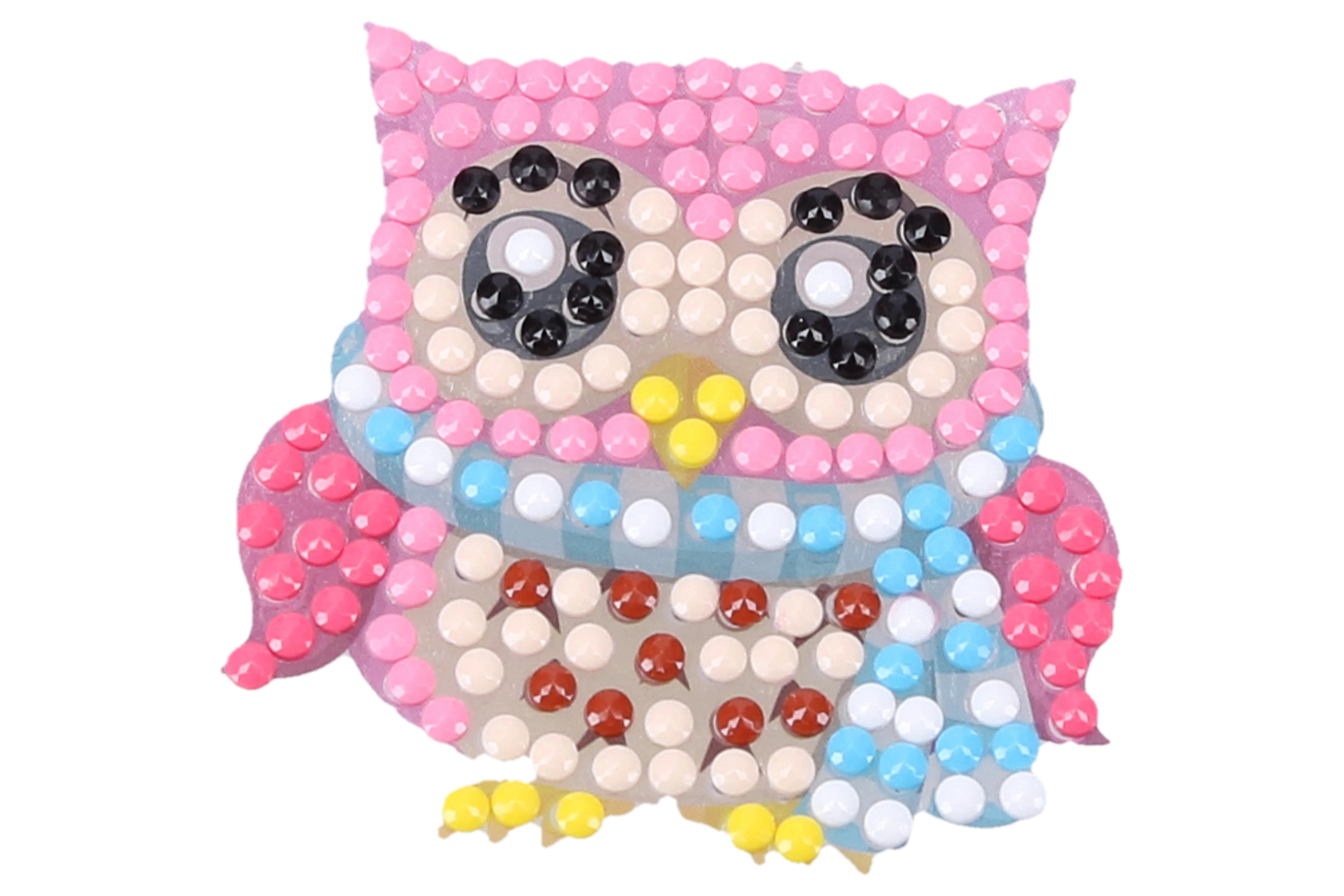 Maak je eigen sprankelende decoraties met uilenmotieven. De diamond-sticker set is een geweldig cadeau voor jonge én volwassen makers en brengt plezier in het knutselen met een prachtig resultaat. Dankzij de meegeleverde steentjes en applicator werk je de motieven gemakkelijk af volgens de kleurcode.
