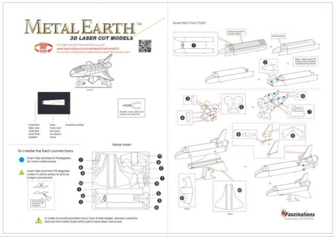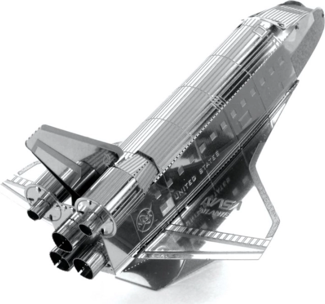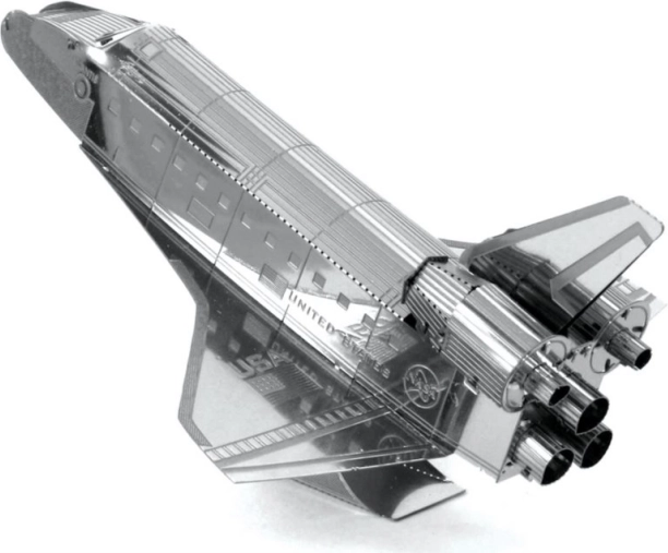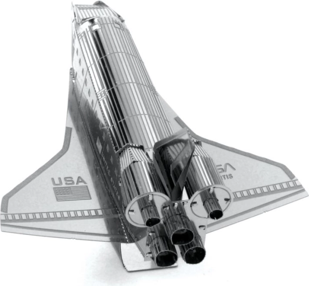 METAL EARTH Spaceshuttle Atlantis is een precieze 3D-metalen modelkit, uitgesneden met laser. Uit een vierkant stalen plaatje van 11 × 11 cm bouw je een getrouwe replica van de legendarische NASA-orbiter met fijn lijnwerk, straalpijpen en opschriften “United States” en “USA”. Het voltooide model is ideaal als verzamelobject en als origineel cadeau.