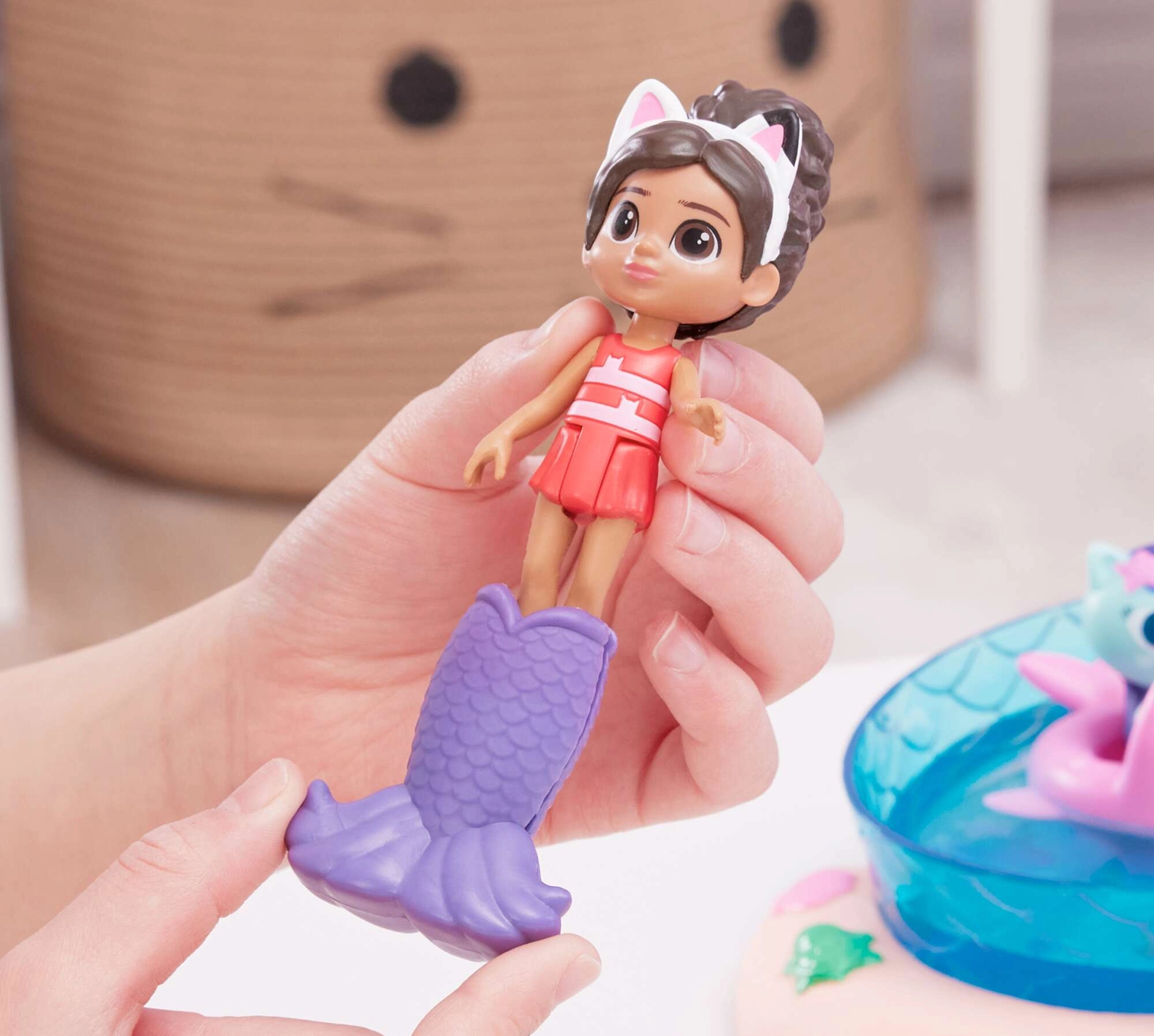 De set is perfect voor zelfstandig spelen en om je Gabby's Kattenhuis-wereld uit te breiden. Kinderen kunnen Gabby een afneembare “zee”-staart omdoen, de ladder beklimmen, het water in glijden en chillen op zwembaddrijfers. In de Kattenpost vind je een minifiguur en een QR-code voor een digitale beloning in de app (iOS/Android).