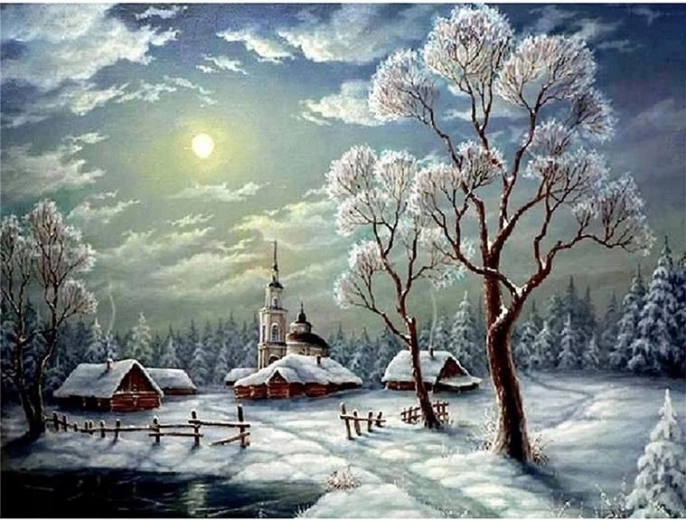 Deze creatieve set voor diamond painting bevat alles wat je nodig hebt om een schitterend, glinsterend kunstwerk te maken. Met de applicatiepen breng je de steentjes één voor één aan op het voorbedrukte canvas met kleeflaag – eenvoudig, schoon en met een prachtig resultaat. Het voltooide schilderij met het winterlandschap kan daarna ingelijst en tentoongesteld worden.