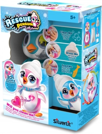 Ontdek het schattige huisdiertje dat jouw zorg nodig heeft – was hem met het magische doekje, kleed hem aan met de wintermuts en sjaal en voer hem met een vissnoepje. De pinguïn reageert met meer dan 50 emoties, heeft een lichtgevend hart dat van kleur verandert afhankelijk van zijn stemming en biedt 20+ geluiden en acties voor leuke, interactieve speelmomenten. Batterijen zijn inbegrepen.