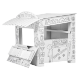 Dompel uw kinderen onder in de wereld van spel met deze kartonnen speelstand. Het ontwerp doet denken aan een klein winkeltje waar kinderen hun sociale vaardigheden en creativiteit kunnen ontwikkelen: