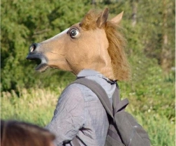 Dit masker biedt realistische details vergelijkbaar met een echt paardenhoofd, inclusief oren, ogen en manen.