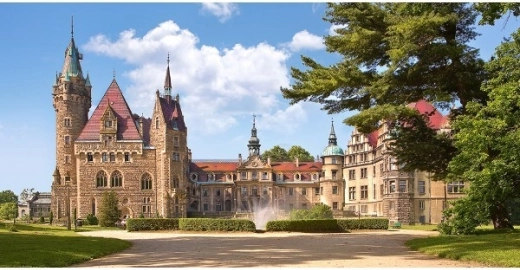 Indrukwekkende puzzel Kasteel Moszna met 4000 stukjes biedt een panoramisch uitzicht op dit Poolse juweel. De afmetingen na voltooiing zijn ca. 138 x 68 cm.