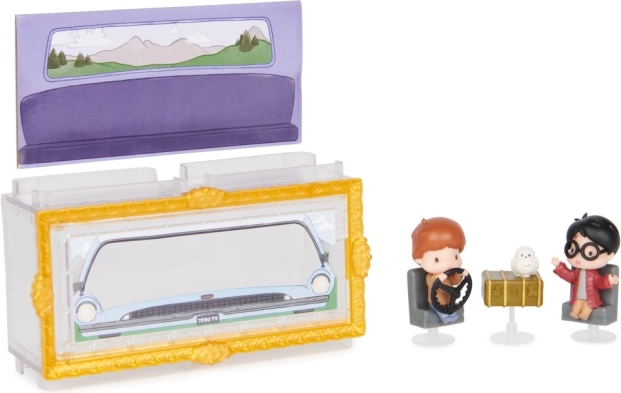 Beleef iconische scènes uit de toverwereld met het dubbelpack mini-figuren van HARRY POTTER en RON WEASLEY in de vliegende auto, aangevuld met Hedwig, standaards en een stapelbaar transparant doosje. Ideaal voor verzamelaars en kinderen, perfect om uit te stallen en te combineren met andere sets uit Micro Magical Moments.