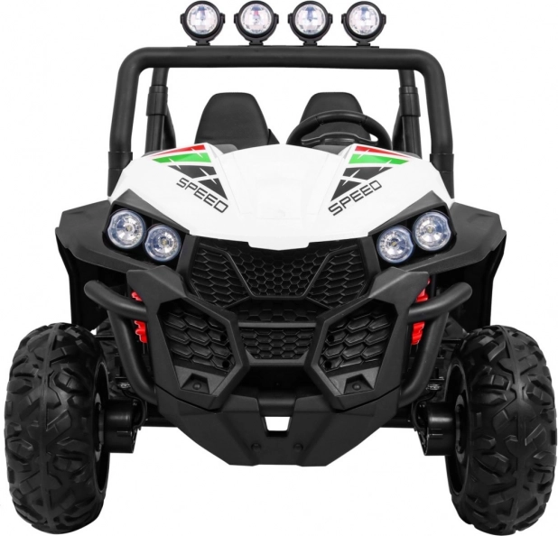 Deze elektrische kinderauto is de perfecte keuze voor alle kleine avonturiers. Als terreinvoertuig biedt het robuustheid en stabiliteit met grote EVA-wielen en aantrekkelijke LED-verlichting. Comfortabel en veilig rijden wordt verzekerd door geventileerde stoelen van eco-leer en verstelbare veiligheidsgordels.