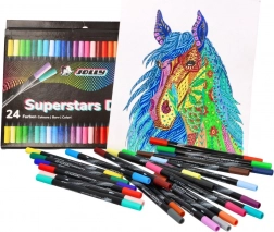 De dubbelpuntstiften Next Gen zijn geweldig voor makers van klein tot groot. De combinatie van een fijne ronde en een afgeschuinde (schuine) punt laat je met één draai aan de stift schakelen tussen detailtekeningen, contouren en het dekkend inkleuren van vlakken. 24 intense kleuren bieden een rijk palet voor schoolprojecten, creatief thuiswerk en creatieve ontspanning.
