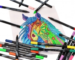 Fijne ronde punt voor precieze lijnen en contouren, afgeschuinde (schuine) punt voor snel inkleuren en krachtige streken. Schakel eenvoudig om door de stift simpelweg om te draaien.