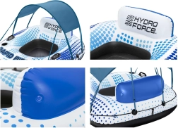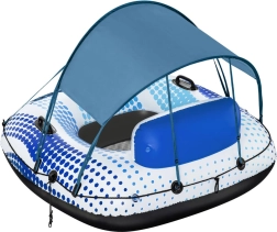 Geniet deze zomer van maximaal comfort met de BESTWAY opblaasbare zwemband met zonnedak en rugleuning. Deze duurzame PVC band in blauw-wit biedt een aangename schaduw, comfortabele rugsteun en een bekerhouder voor ultieme ontspanning op het water. Dankzij het veiligheidsventiel en het CLASP 'N GO-systeem kun je hem eenvoudig koppelen aan een andere band.
