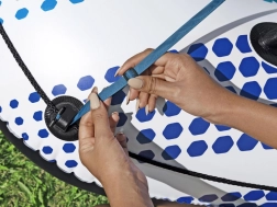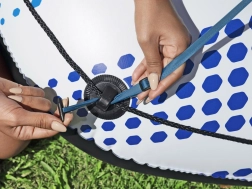 Voor veilig en eenvoudig gebruik is de band uitgerust met een veiligheidsventiel tegen luchtverlies en het slimme CLASP 'N GO-systeem om te koppelen met een andere band. In de verpakking vind je ook een reparatiepatch voor onverwachte kleine beschadigingen.