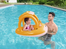 De boot is uitgerust met een opblaasbare bodem voor maximaal comfort en een doorkijkraampje van het peek-a-boo type, waardoor kinderen onder water kunnen kijken. De afneembare overkapping biedt bescherming tegen de zon.