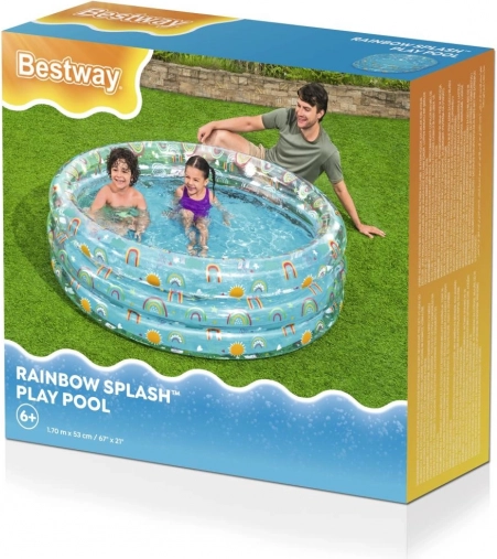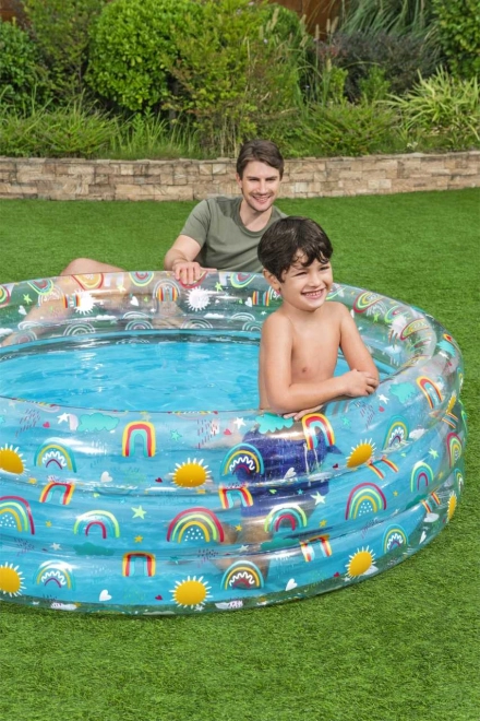 Geef uw kinderen de perfecte zomerervaring met het opblaasbare zwembad Tropical Bestway, geschikt voor elke tuin. Dit transparante zwembad met aantrekkelijke regenboog- en zonmotieven is ontworpen voor eindeloze uren plezier en verkoeling tijdens warme dagen.