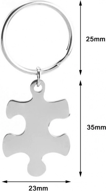 Originele puzzel-sleutelhanger van chirurgisch staal met een gladde, gepolijste afwerking. Zonder bedrukking of gravure; deze hanger is ideaal voor dagelijks gebruik dankzij zijn duurzaamheid en elegantie.