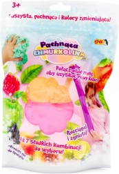 Chmurkolina biedt speelplezier dat de zintuigen en de verbeelding prikkelt. Door twee kleuren te combineren ontstaat een nieuwe, originele tint, terwijl de aangename fruitige braamgeur de speelervaring versterkt. De massa is heerlijk licht, zijdezacht en plakt niet aan de handen, dus perfect voor knutselen thuis.