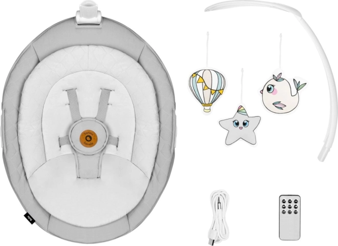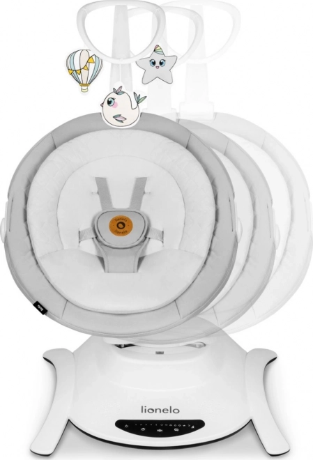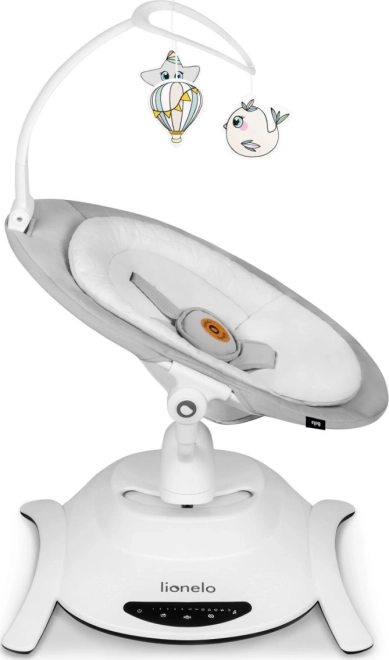 De schommelstoel biedt 6 bewegingsstanden en een automatische detector die het schommelen en muziek activeert. Bediening kan via het touchpaneel of meegeleverde afstandsbediening.
