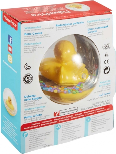 Het Fisher-Price Watermates-activiteitenspeeltje bevat een schattig eendje dat drijft in een transparante bal. Het moedigt kinderen aan om te duwen en te rollen met de bal, en later, naarmate ze groeien, om te kruipen en erachteraan te gaan. Deze kleine drijvende vriend zorgt voor geweldig speelplezier, van pasgeborene tot peuter! Het heeft precies het juiste formaat voor kleine handjes om vast te pakken, en binnenin wervelen kleurrijke confetti die je kind aanmoedigen om ermee te schudden.