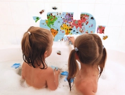 Super leuk voor in bad! De set bevat 28 puzzelstukjes. De stukjes drijven op het water en zorgen voor veel plezier tijdens het badderen. Je kunt ze tegen de tegels plakken en in elkaar zetten. Geschikt voor kinderen vanaf 3 jaar. Afmeting van de gelegde puzzel ca. 47 x 24 cm