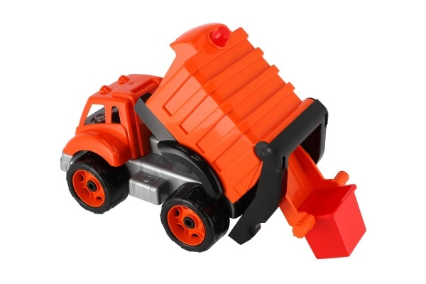 Ontdek de duurzame kunststof vuilniswagen waarmee kinderen veel plezier beleven in de tuin, in de zandbak en in de kinderkamer. De feloranje kleur, robuuste wielen en compacte afmetingen zorgen voor veilig en creatief spel.