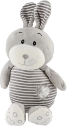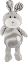 Dit grijze, gestreepte konijntje met schattige details en een hartje op het buikje geeft kinderen een gevoel van veiligheid en comfort. Het is gemaakt van aangenaam, zacht materiaal dat uitnodigt tot knuffelen en ook geschikt is voor de allerkleinsten.