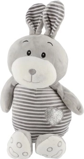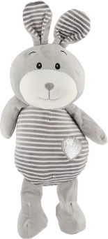 Schattig en zijdezacht pluchen konijntje met gestreepte oortjes en lijfje, de perfecte knuffelvriend vanaf 0+. Dankzij het zachte materiaal ideaal voor in het wiegje, onderweg of als stijlvolle dec... Meer tonen