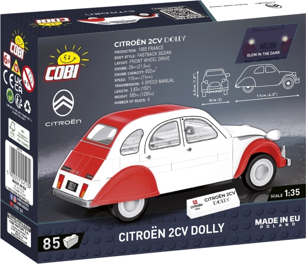 COBI Citroën 2CV Dolly 1:35 – 85 onderdelen, bewegende wielen, gedetailleerde prints en verzamelplaatje. Kwalitatieve EU-bouwset voor fans van klassieke auto’s.
