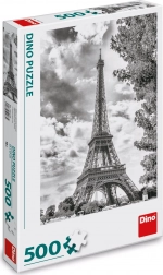 De puzzel toont de iconische Eiffeltoren, het symbool van Parijs en Frankrijk, in een elegante zwart-wit uitvoering.
